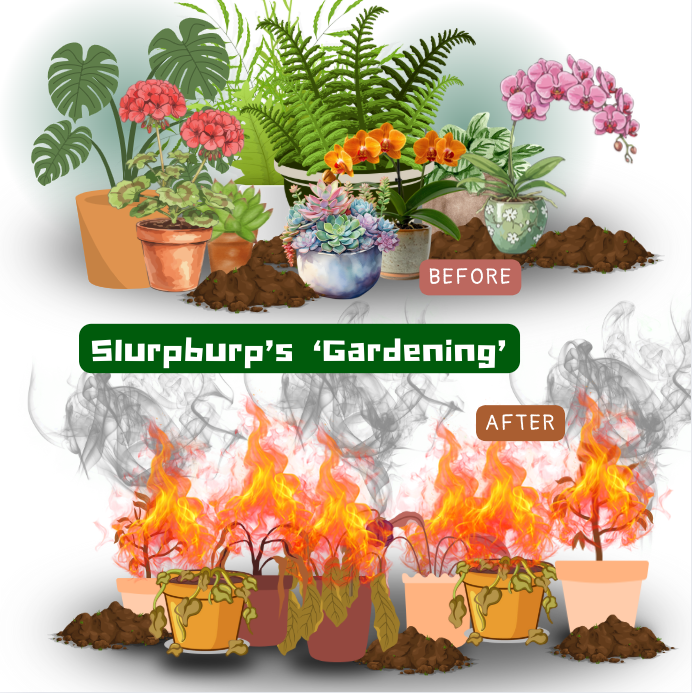 🧦 One minute Slurpburp is hugging you, knitting you socks and brewing endless cups of tea. The next? You’re smothered in wool, drowning in fog and attending a funeral for your favourite houseplant. 🪴🪦