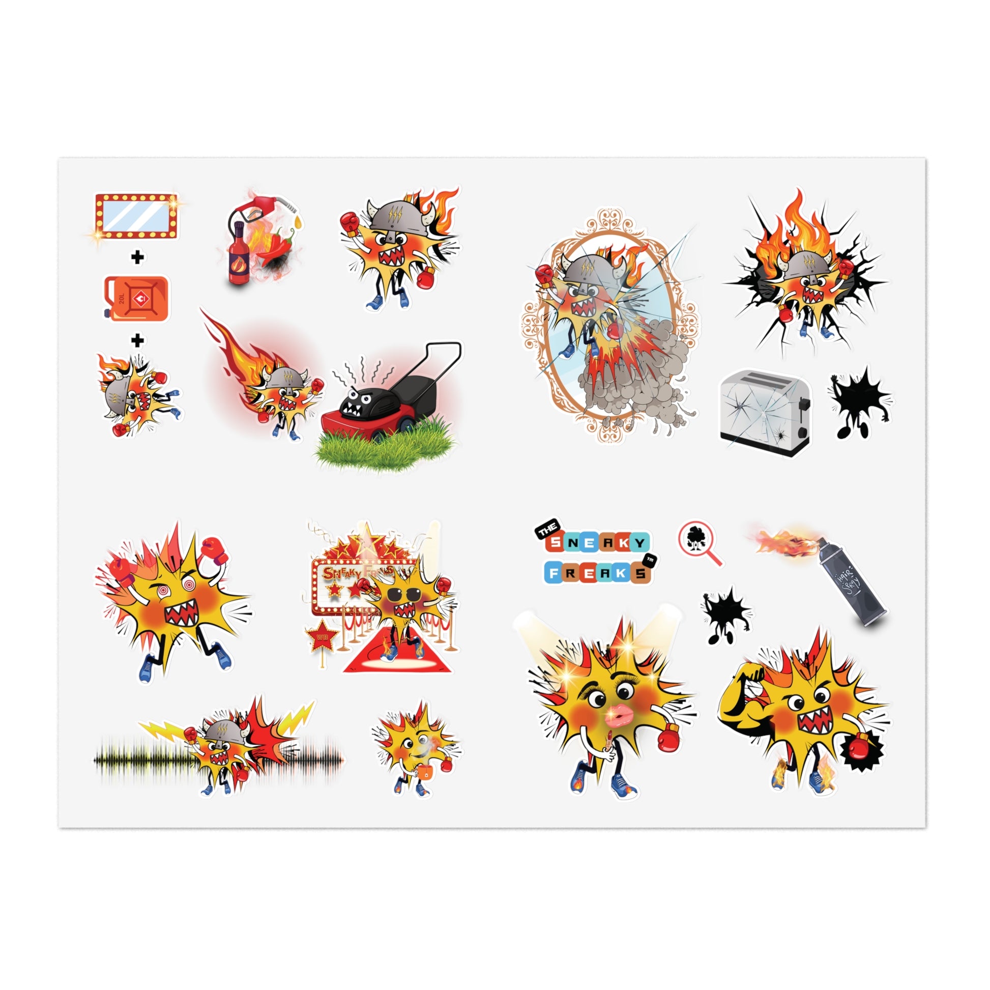 This is the Ultimate WALLYBANG Sticker Sheet, crammed with enough vanity, volume and volcanic energy to blow up your desk. Slap some W-Bang on your face, your speakers, your bathroom mirror and your toaster (or your enemy’s bike) and let the world know you live the BANG-LIFE: loud, incredibly up yourself and always right on the edge of meltdown.